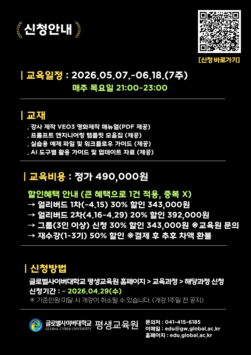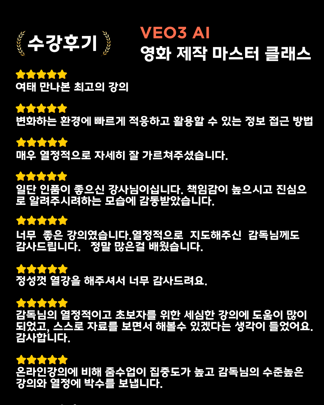 VEO3 AI 영화 제작 마스터 클래스 4기 [실시간 줌]